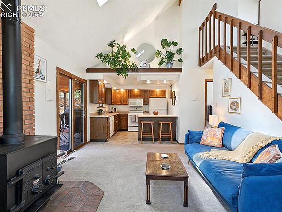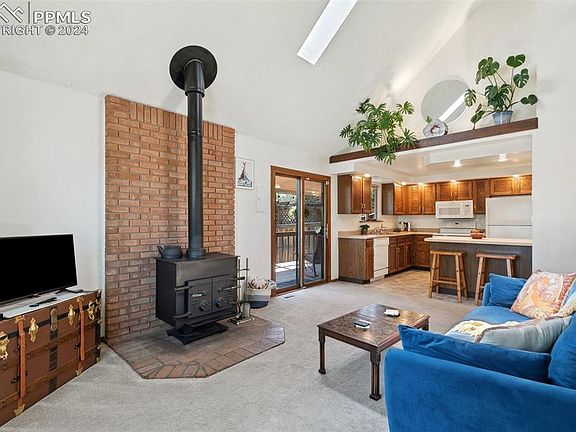 Welcome home to this peaceful paradise, located just a stone's throw from Red Rock Canyon Open Space - a playground for runners, hikers and mountain bikers. Views of Garden of the Gods rock formations can be enjoyed from the primary bedroom and the deck. As you step in to the living room you'll be greeted with vaulted ceilings and natural light pouring through the skylights, this room features a wood burning stove to keep you cozy during those colder winter months. The sliding glass door allows you to easily walk out to the deck and private backyard which supplies a great place for summertime meals. The adjacent, open kitchen includes a nice sized butcher block island. In the last year, this home has undergone plumbing updates, a new roof, a new radon mitigation system and new vinyl windows in the basement! Upstairs, you'll find the primary bedroom retreat with a large walk-in closed and private 3/4 bathroom. The basement is home to the laundry area, additional storage, and could easily be used as an additional bedroom, living room, play room, or home gym or office! Schedule your showing and come take a look at this wonderful home before it's gone!