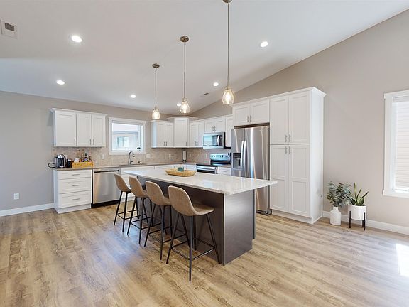 Welcome home to 3713 White Pine Circle! This 2021 townhouse offers single level living featuring 2 bedrooms, 1.75 baths and a TRIPLE stall garage in Minot's Bluff Point Estates! As you step inside, you'll be greeted by a cozy living room that opens up to the dining area and kitchen, creating a spacious and inviting atmosphere. The kitchen boasts modern appliances, ample cabinet space, oversized island and quartz counters throughout. The master bedroom is complete with walk-in closet and en-suite bath. There's an additional bedroom and full bath along with private laundry room all conveniently located down the hall. The attached 3 stall garage is sheet rocked, heated and complete with floor drain. Located in a quiet SE neighborhood close to shopping and walking paths this desirable townhouse won't last long! Schedule your showing today.