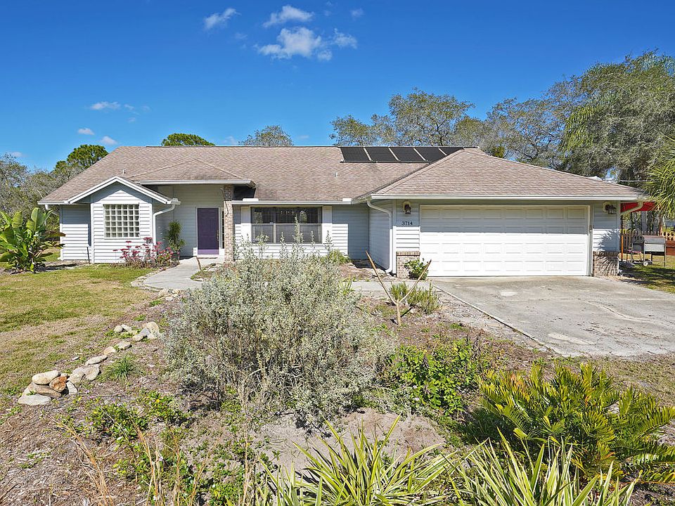 SERENE COUNTRY LIVING WITH PERKS! Pristine solar heated POOL home on 1 acre with WORKSHOP, garden shed, storage shed & raised garden beds ready to plant! Now for the inside---spacious open kitchen with solid surface counters, nook, family & living rooms, SS appliances w/double ovens plus convection microwave & bottom drawer frig. Master suite with large walk-in shower, garden tub & double sinks. There are 3 more large bedrooms, one with built-ins perfect for the office plus an updated guest bath. Vaulted ceilings, attractive flooring & neutral color palette, too. This is a tropical oasis with papaya, banana, orange, grapefruit, guava & plants galore. The workshop with power is 20 x 12 with front & garage doors. Let the gardener in you loose in your potting shed and create more magic!