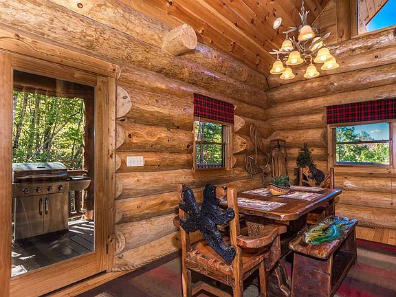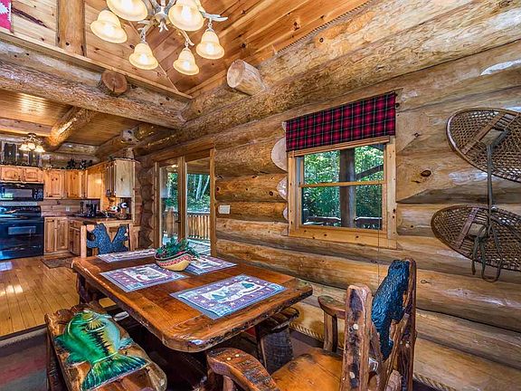 ABSOLUTELY STUNNING LOG HOME!!! Be the new owner of only ONE OF A FEW built in the ENTIRE county! The logs are between 125 to 200 years old! The craftsmanship is unsurpassed! You will not believe this property until you see it with your own eyes! It is just beautiful! The main floor is open and inviting! It easily flows from one room to another. The Living room, Game room, Dining area, kitchen and wet bar are all accessible and ready for fellowship! The main floor is serviced by it's own half bathroom. Upstairs is a wonderful open loft with the exposed enormous logs for a dramatic effect. The custom tile shower and Jacuzzi bath make a great master suite for a couple. The lower level has 2 bedrooms, beautifully decorated with hand made log furniture from RiverWoods. The den has a large screen television, seating for 7, sleeping for 2, outdoor exit to the Hot tub plus a large bath with double sinks, a walk in shower and a Jacuzzi tub! New copper color roof installed August 2017.
