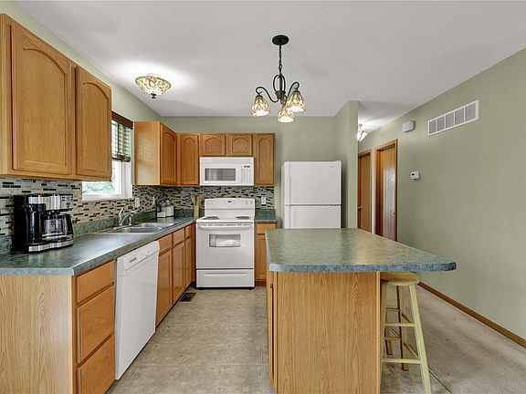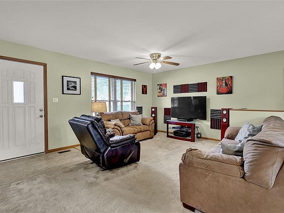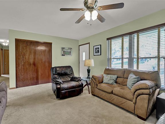 Welcoming 2 Bed, 1 Bath Ranch situated on a large corner lot in a not-through neighborhood. Featuring an open floor plan, Main Level Laundry Rm, water softener & filter system. The Kitchen comes w/oak cabinetry, glass tile backsplash, center island w/breakfast bar, & Breakfast Rm with sliding doors leading to a deck. Full Hall Bath with tub/shower combo, vinyl floor, oak vanity & hall linen closet. Two main level bedrooms. Master has Pergo flooring & a walk-in closet. A third bed could be created in the basement where there is an egress window & plenty of space to finish to your needs. The home is all electric, however, it does have a LL free-standing gas fireplace (currently not in use). Unfinished lower level includes rough-in for a second full bath with some shower materials for build-out included, sliding doors to a patio, custom workbench stays with the home. The backyard includes a shed & mature trees. Being sold as-is. Buy with little to no money down! USDA Financing available.
