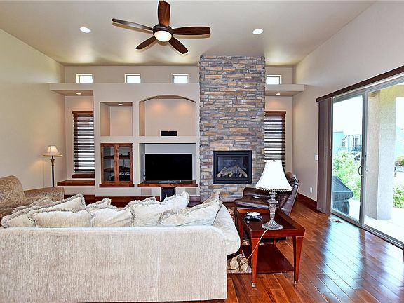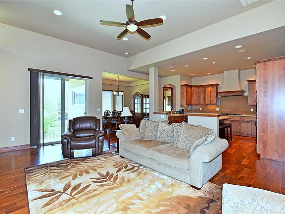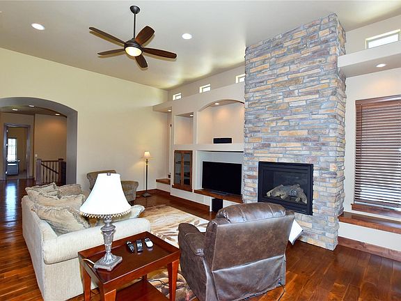 Fantastic Fossil Lake patio home. 4 bed, 3 bath, office, & great rec space in finished basement w/full theater set up & wet bar. Open layout is great for entertaining through kitchen, great room & dining. Big kitchen has island, SS appliances, gas cook top, double oven, hood, hardwood floor, granite & pantry. Large great room has gas fireplace w/floor to ceiling stone surround & built-ins. Large master has 5pc bath w/walk-in spa shower & walk-in closet. Large covered patio!