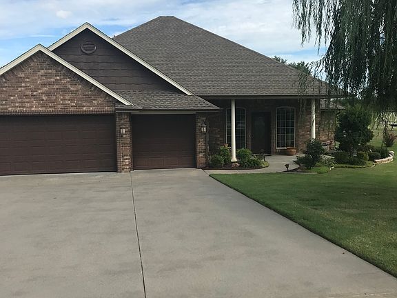 Contract Pending. Move in ready. Owner transferred. Custom built home with split bedroom plan. Granite counters, gas range, built in oven, large walk-in pantry, new wood floors in August 2017, new hot water tank June 2018, new air conditioner in July 2018, gutters added August 2018, dining room, large eat in kitchen, walk through master closet, with 3 tier rack, to laundry room, jetted tub, jumbo storm shelter, beautifully landscaped, extended patio, large front porch, three car garage with painted floors, all on 1/2 acre lot with no neighbors to the rear. Home is in the Remington Place Estates neighborhood off of HWY 9 West. Newcastle School District. Contact Owner directly at (918) 607-5805 for appointment.
