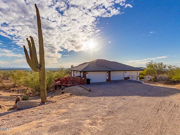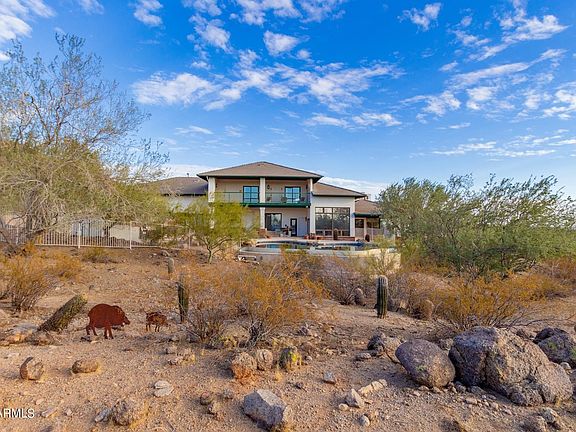 Huge Custom Home on 2 acres with amazing hilltop views of Phoenix!!! Stargaze at night or admire the city lights from the convenience of your living room, master balcony porch, or private backyard infinity edge pool! Capture amazing photos of wildlife in the yard daily. Plenty of space to entertain family and friends in this 4 bedroom plus den, 3.5 bath home. Enjoy soring high ceilings with guests in one of the many rooms including a formal dining room, eat-in kitchen, living room, sitting rooms, and wet bar. Bring the cars, trucks & toys with plenty of garage space; 4 car garage & huge RV garage, you could even turn one of the 2 car garages into a workshop! This great value home with No HOA will not last long!!!