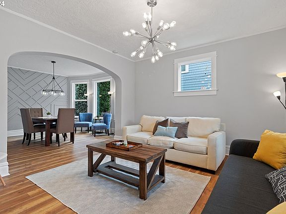 This is THE one! Welcome home to this revived gem located in the desirable Albina area. New designer paint, beautiful wood geometric accent wall, new appliances, new fixtures, and restored hardwood floors bring a modern feel while keeping the original charm. Light and bright Living Room, formal dining room and shiny new kitchen make this a great home for entertaining! Spacious primary bedroom on main floor with french doors plus 3 more bedrooms upstairs. Need more space? Check out the basement, just waiting to be your next office, hobby room or great room. Enjoy our PNW summers on the front porch or deck in the fenced backyard. This one won't last long!