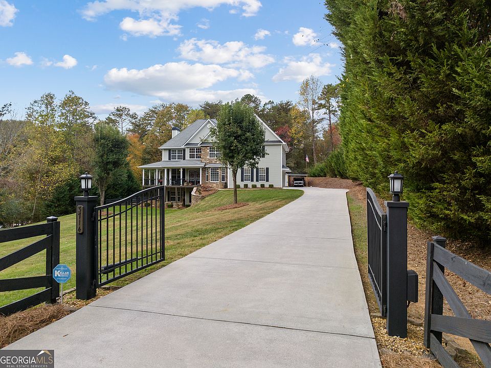 Fabulous North Hall home on 1.43 acres. 5 bedroom, 4.5 bath in Mt. Vernon School district. This is a must see! The home's curb appeal is enhanced by a beautiful fenced yard and gated drive for privacy. The expansive wrap around front porch offers lots of opportunities for outdoor living and is extremely welcoming. The beautiful two story foyer is an elegant touch and perfect backdrop for the curved staircase leading to the 2nd level. Beautiful hardwood flooring throughout the main level adds to the beauty of this home. The living room has a charming stone fireplace with high efficiency wood burning insert. The kitchen is equipped with all stainless steel appliances and a brand new double gas oven. Two pantries, an island, and a beautiful bay window add to the charm. The main level also offers a half bath, formal dining room, and office/flex room. Upstairs you will find 5 bedrooms and three full baths. The roomy master suite offers a spacious master bath featuring his and her vanities, Whirlpool tub, and large walk-in closet. Additionally, there are two sets of Jack and Jill bedrooms making this a wonderful home for a growing family. The laundry room is located on the 2nd level. The finished basement offers a living room/man cave with bar area, a flex room connected to a full bath that could serve as a 6th bedroom, and an additional flex room that could be used as storage, workout room, craft room, etc. You will also find a garage/mechanical room in the basement with roll up door. This area is large enough for a boat, car, etc. Out back the spacious deck, firepit, play set, and upper fenced garden level offers an ideal spot for outdoor dining and entertaining. The completely fenced side yard is perfect for your four-legged friends. The home also offers a 12 X 24 outbuilding with roll up door and attached carport. NO HOA!!