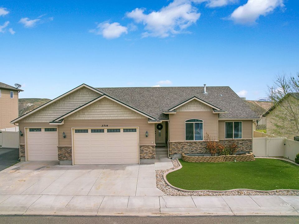 This well kept home is the definition of pride in ownership! Located in Brookwood Estates close to many amenities. As you approach the home you will notice the 9' tall garage doors that access the 3 car garage with a 10.5' tall ceiling great for any oversized vehicle. It also has a 220V outlet. RV parking is hard to come by in town and this house has extra large asphalt parking just for that! Beautiful vaulted ceilings and an open floor plan. The kitchen has newer appliances. On the main level you have 3 bedrooms and 2 full bathrooms including the master suite. Going downstairs you will notice the extra wide stairs and you have the 3 additional bedrooms and 1 full bathroom, a large living space and a high output pellet stove to make the room cozy for watching movies on the projector. The backyard features a fully fenced landscaped yard, multiple fruit plants, and the front yard is low maintenance with turf!