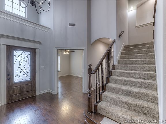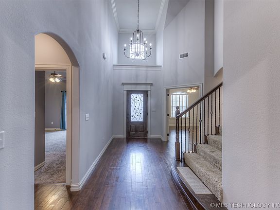 Great home in amazing small Gated community in Jenks. This home offers 4 beds(2 down, 2