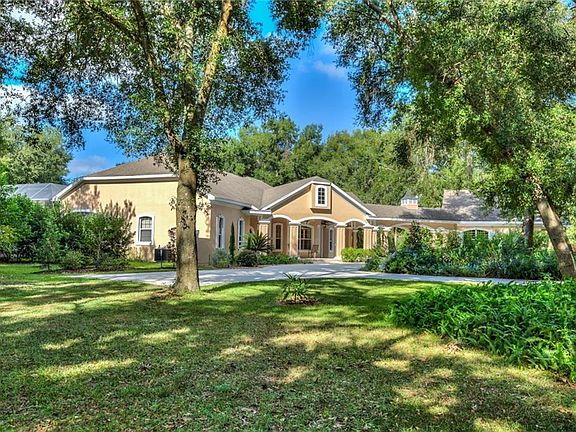 Custom built home nestled beneath mature oak trees on 7.5 +/- acres. Gated entry welcomes you home to beautiful park like setting. Circular drive & extra parking pads for RV, boat & toys! Stately columned covered front porch has wood lined ceilings. Leaded glass front door invites you into foyer. Light filled interior has glowing hardwood floors, crown molding & attention to detail throughout. Comfortable floor plan offers living room w/built in shelves & gas fireplace, dining room & half (pool) bath. Custom kitchen overlooks living room & features cherry cabinets, granite counters, center island, double oven, warming drawer, wine refrigerator & walk in pantry! Versatile office, den, library or nursery has double doors leading to Master Suite. Master Suite has unique coffered ceiling & master bath has double vanity, walk in shower, whirlpool tub & two walk in closets! Guest bedrooms are generously sized w/Jack & Jill bath equipped with walk in shower, jetted tub & private vanities. Laundry room has utility sink, cabinets & front-loading washer & dryer. Nearly every room offers easy access to private covered lanai w/screened, heated pool & spa, outdoor shower & outfitted for gas grill. Attached by a covered breezeway the apartment is perfect for your guests, in-laws or growing family featuring bedroom, walk in closet, full bath & living room/hobby room or workshop with kitchenette area. This corner lot is fully fenced w/two entry gates. NO HOA! Country feel with convenient location close to all amenities!