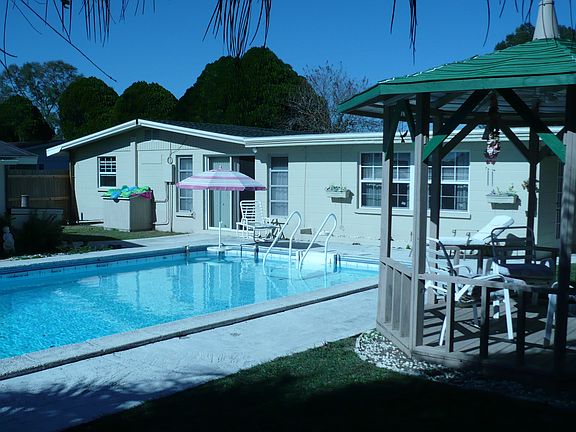 This home is located in Fort King Acres, an older highly desired development located off of Fort King rd. in Zephyrhills, FL. Home has 3 bedrooms, 3 full baths, kitchen with dining area, living room with Franklin stove fireplace, 2 large 12 x 16 bonus rooms with terrazzo floors, a 12 x 18 florida room, and a utility room with washer and dryer hook-up. Outside there is a 16 x 32 inground pool with gazebo next to it. For in-laws or guests there is a 625 sq ft detached 1 bedroom, 1 bath suite with living room and kitchen/dining area. Outside for storage there is a 10 x 16 building, and for recreation or hobbies there is a 20 x 24 building fully electrified and ready for your pool table or any other equipment. Back of property is fenced in for animals or for the safety of your children. Main house has new double pane windows and roof is new as well. In-law suite has new windows too. This, all in all, is truely a unique property in a great neighborhood, please see for yourself you will be pleasently surprised. Neighborhood Description Older and highly desirable and a well kept secret neighborhood. Close to all of the shopping stores in Z-hills. County property not city of Z-hills.