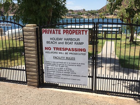 Prime Perch-Estate Sale. This panoramic view lot was chosen by developer to place a 1978 triple wide MH. It has a majestic 180 degree view of Colorado River. Holiday Harbour has a private boat launch & private park. All measurements approximate(sq,ft per county assessor). Sold as-is; not habitable. Seller-Executor- has never occupied home.