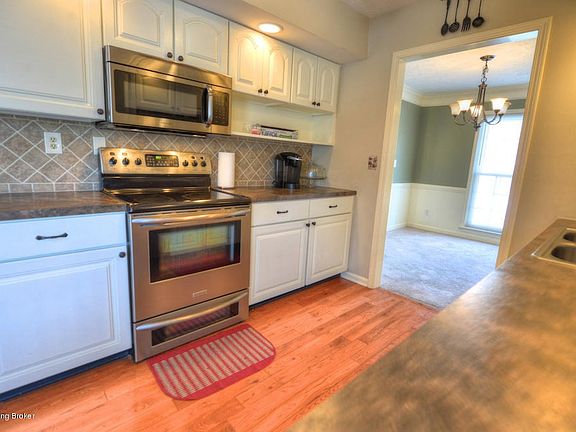 Updates, Spacious and very impressive! The pictures of this brick ranch with finished basement tell the story. Visit the home in person you will not be disappointed! Walk into a formal entryway with 9-foot ceilings, crown molding, a unique wall niche and hardwood flooring. Turn to the left and there's a large living room that flows into a dining room (both have more crown molding, oil rubbed bronze fixtures and newer Mohawk Taupe Allure carpet). The eat-in kitchen is a chef's delight! It has been updated with stainless steel Frigidaire Professional Series dishwasher, microwave and oven, counter-tops, tile back-splash, hardwood floors. There is an abundance of both counter-top space and cabinets. Don't miss the pantry and extra storage around the refrigerator.