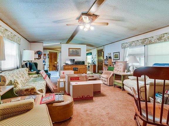 Mobile home with 2 bedroom, 2 bathroom featuring a 2 season covered porch as soon as you enter the home. A spacious living room, a nice size kitchen to fit a table, and a master bedroom with a private full bathroom. Parking is a carport. Property needs work and ready for the new buyer to go in and make it theirs. Property needs a new roof and interior needs paint and flooring.