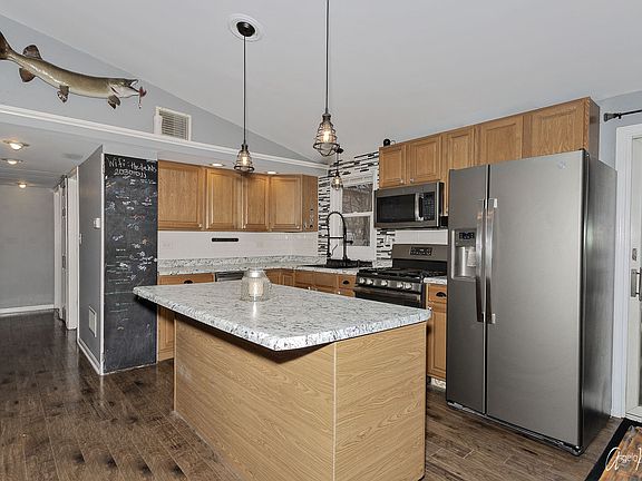 Great 4 Bed/2 Bath Home On Almost 1/2 Acre Corner Lot In Desirable Johnsburg School District~Laminate Flooring Throughout Main Level~Open Concept Kitchen/Living Room With Cathedral Ceilings, Table Space, Tiled Backsplash, SS Appliances And An Island With Seating For 3~Full Bath And 3 Good Size Bedrooms Complete The Main Level~Finished Basement Includes A 4th Bedroom, Full Bath With Beautiful Tiled Walk In Shower And Double Vanity, Laundry Room, Family Room And Dry Bar Area~Large Concrete Patio Right Off Kitchen Offers Spacious Outdoor Entertaining And Is Partially Covered~Attached 2 Car Garage And Large Shed Boasts Plenty Of Additional Storage~Great Starter Home Being Offered At A Great Price!