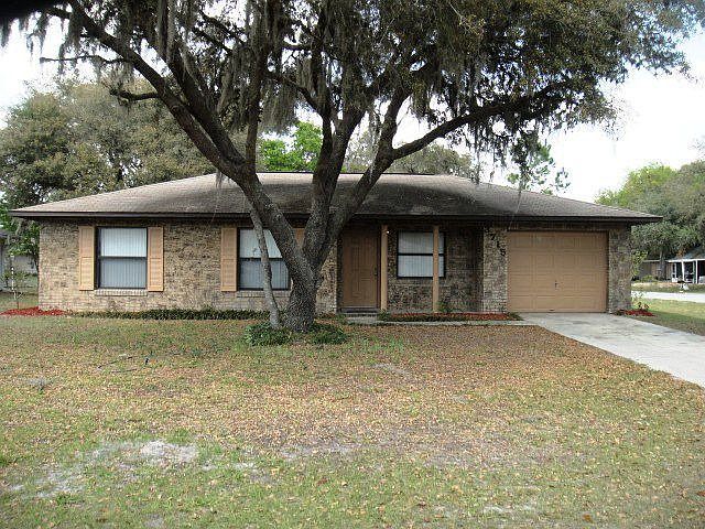 **3 Bedroom, **2 FULL BATHS**, 1 Car Garage all nestled under shady oak trees! **CORNER LOT**. One of few homes in neighborhood with 2 full baths! **A/C Handler replaced in 2007**. Fully functional floor plan with 2 living areas! Upgraded **WOOD** laminate flooring in living area. Neutral interior paint. Kitchen features offset **TILE** floor, plenty of cabinet & counter space, and bar counter perfect for entertaining! **BREAKFASTNOOK in Kitchen**. Good size secondary bedrooms. Upgraded master bath with newer vanity & tiled shower. Large utility and storage room! HUGE deck in rear of home overlooks large backyard. **FENCED** back yard with double gate for access to **COVERED BOAT STORAGE**. No HOA! Close to major highways such as I4 & Polk Parkway. Short hour drive to Tampa, Orlando or Gulf! Less then 1 hour to Orlando's Theme Parks! Hurry! This one won't last!