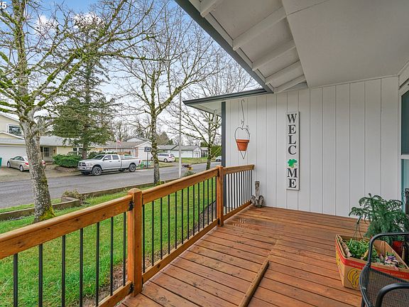 Charming Ranch-Style Home on Spacious Lot! Beautifully maintained and move-in ready, this delightful ranch-style home sits on a generous 0.18-acre lot and offers both comfort and convenience. A cute covered front deck with an accessible approach ramp from the driveway welcomes you inside. The bright living room features sliding doors that lead to the patio, perfect for indoor-outdoor living. The kitchen has butcher block countertops, lots of cupboard space, and an adjacent dining area. A convenient door from the kitchen leads to the garage, which includes extra storage and backyard access. The primary bedroom offers double closets, while two additional bedrooms provide versatility for guests, office space, or hobbies. The full bath includes a tub/shower combo for added functionality. Recent updates include a new electric water heater, furnace, heat pump (2021), new roof and gutters in 2021, remodeled bathroom in 2022, outside painting done in 2024 and All inside painting (including all bedrooms) in 2025. The large, fully fenced backyard is easy to maintain and features a patio, making it ideal for relaxing or entertaining. Enjoy the perfect location—just minutes from great restaurants, parks, Chehalem Glenn Golf Course, and George Fox University.