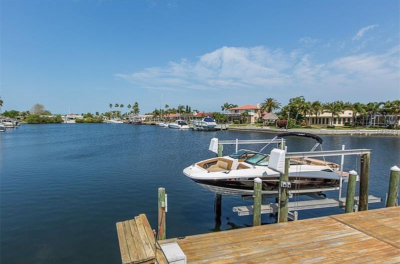 Beautiful home with 90 feet of waterfront, just around the corner from the Gulf, with water views down a long, wide canal. Imagine relaxing on your own huge outdoor deck - enjoying colorful sunsets. Imagine swaying in your hammock while watching the dolphins swim by. Imagine docking your own boat on your 7500 lb boat lift or stationary dock - with room for almost any size boat and all your water toys. Stop imagining! This 2257 sq ft home in Gulf Harbors has 3 bedrooms, 2 baths, a formal living room, large eat-in kitchen open to the great room and facing the water. So much potential for the buyer looking for indoor and outdoor entertaining space. The one-of-a-kind master suite with spacious ensuite bath, extra large walk-in closet and doors opening to the waterfront. The fenced, pool sized back yard and the expansive dock offers a fantastic place to BBQ, entertain family and friends and just relax and enjoy your slice of paradise. Located just a few blocks from the Gulf Harbors Private Beach; exclusive membership available for just $144 year. This immediate deep water access home checks all your boxes for Florida living! Schedule your tour today.