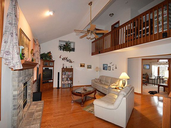 Meticulously maintained home w/sport pool overlooking the pond!! Park like setting w/over 14 trees offering privacy, lush landscaping, fenced yard & large deck! Quality built Fall Creek home w/4bdrms & 2.5 baths plus many upgrades! Inviting foyer. Great Room w/real hardwood floors, gas FP w/blower, plant shelf, cathedral ceiling open to loft. Kitchen w/pantry, staggered cabinets trimmed w/molding, all appliances stay including washer & dryer! Dining area w/bayed window & bayed wall at patio door! Large den w/custom window. Spacious Master on the main level w/bayed window. Full master bath w/walk-in closet, corner jet tub & separate stool/shower area. 2 additional bedrooms upstairs each w/2 closets! Loft offers extra living space for whatever your need! Add’l features: tile floors, plenty of storage, closet tamers thruout, master carpet 4yrs young, water heater ’13, plant shelves. Garage offers maximum storage w/5’ bump out, peg board, shelving, cabinets & floored attic. Bought from the original owner in May 2014 and remodeled into a 4 bedroom by converting the large office room to a full functional 4th bedroom!