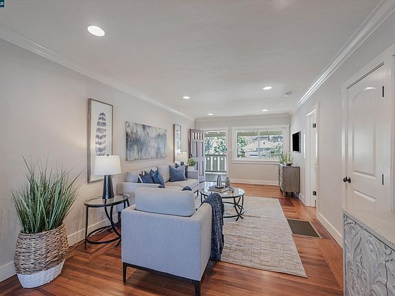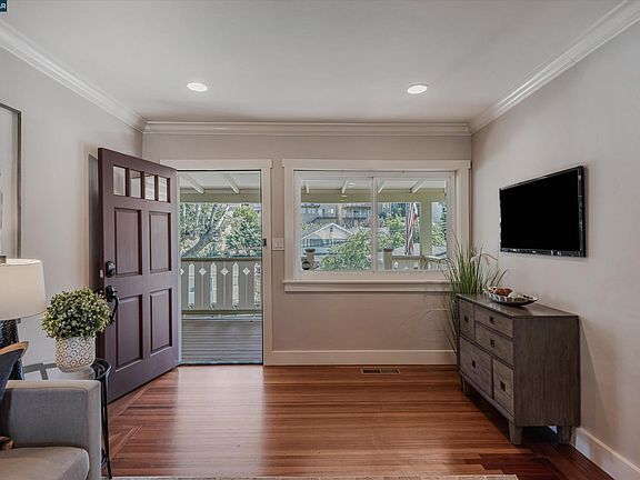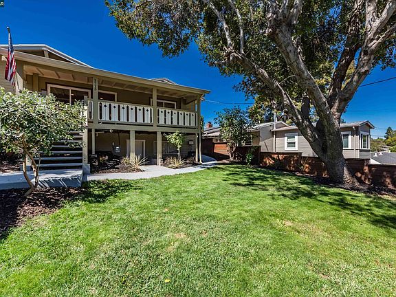 Glorious sun-drenched Eastern exposure. An urban escape awaits you with a private upsloping lot, flat fenced grass front yard and a beautiful shade tree to sit under in the afternoon. Envision sitting on the front porch waiving at neighbors and enjoying fresh air. Dinner with friends is a must, using the updated kitchen with stone countertops and stainless-steel appliances. Indoor/outdoor living is a breeze with the backyard covered pergola and space for sitting/dining area or hot tub under the stars. Three bathrooms for you and your guest's convenience. The oversized Primary suite faces the morning light and includes space for a sitting area or office. The unfinished full basement is excellent for storage and can be transformed into a yoga room, workshop or exercise room. Conveniently located close to transbay bus lines, HW13 and 580 for easy commute and access to downtown activities. Make sure to visit the Laurel, Montclair and Lincoln Village shops and restaurants. Feel the warmth of this well cared for Redwood heights gem and make it home.
