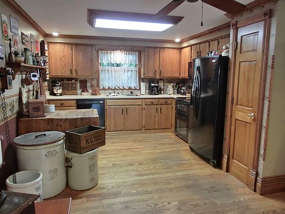 Attractive curb appeal with updated vinyl siding & thermopane windows in 2009; Tear off & new shingles by D&D Roofing & new concrete driveway in 2008; Living room - oak dentil crown moulding & 8 inch baseboard; Oak flooring in kitchen & large dining room & gas log fireplace; Kenmore Elite range, microwave, & refrigerator - 2010 range has convection & regular oven; Den has 6 fabulous walnut built in library cabinets; Family room with pine floor & woodwork; Main floor MBA with dentil crown moulding; Remodeled full bath & laundry room; 2nd BR has own full bath with tile floor; 2 large BRs & full bath up with tile floor (oak floors under carpet); Whole house generator; 2 car garage with attic storage; Metal fenced yard; 2 sheds