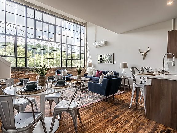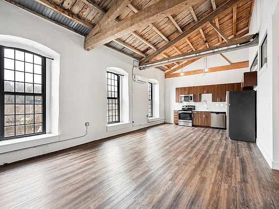 Once the oldest yarn factory in America, Yarn Factory Lofts is now home to an array of one- and two-bedroom luxury loft apartments. Each space incorporates the original design of the building, from restored original hardwood floors and polished concrete to the exposed beams and brickwork. Each space is lit by large windows accompanied by soaring ceilings. All kitchens and bathrooms offer contemporary design and appliances that tastefully compliment the historic atmosphere of the space, including custom-made industrial fixtures and decor.