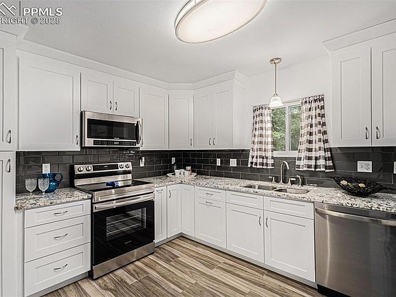 This well-maintained ranch-style home offers 3 bedrooms and 2 bathrooms, with all bedrooms conveniently located on the main level along with a full bath, spacious living room & dining area with hardwood flooring, and a well-appointed kitchen. The kitchen boasts granite countertops, a decorative subway tile backsplash, white shaker cabinetry, and stainless-steel appliances. The finished basement adds valuable living space with a large family/rec room, a ¾ bathroom, and a laundry/utility room. An additional bedroom could easily be added to this space. Outside, you'll find a single-car carport and a low-maintenance stucco exterior (updated in 2016). The roof was replaced in 2019. The landscaped front yard has large mature trees that offer excellent shade in the summer months. Located just minutes from UCCS, with easy access to Union Blvd, Austin Bluffs Pkwy, and Nevada Ave. Nearby parks, hiking and amenities make this property ideal for a primary residence or a smart investment opportunity. Don't miss this move-in ready home in a convenient, central location!