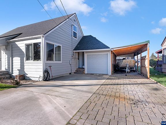 Charming Hobby Farm in the City! This 4-bed, 1-bath home sits on nearly 1/4-acre. The open family and dining area flows into the kitchen, leading to a covered outdoor space with a stunning propane stone fireplace. The backyard retreat features a treehouse with a slide, chicken coops, an insulated dog house, a workshop, RV parking, a boat/carport, and a garden. Enjoy fruit trees, berries, and privacy with no neighbors across the street. Seller is licensed in OR.