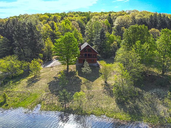 Four bedroom showcase of northern Michigan charm...with 222' on no-wake Porcupine lake. 3 levels of comfortable living space, each w/pine tongue & groove finishes. The main level offers an open kitchen/dining/living area w/wood burner, walkout to wrap-around deck, & serene lake views. The master suite w/3/4 bath, a 2nd bedroom w/walk-in, & another full bath w/hand-carved door complete this level. The upper loft is a 2nd master w/built-in storage, 1/2 bath, living space & calming views. The lower level walkout offers family room w/doorwall to lake, 4th bedroom, utility room, 3/4 bath & large open foyer. Tastefully decorated, very clean & well maintained. All appliances, some furniture, paddle boat, one-year home warranty and more included. 1 car attached garage, 2.45 acres, more..
