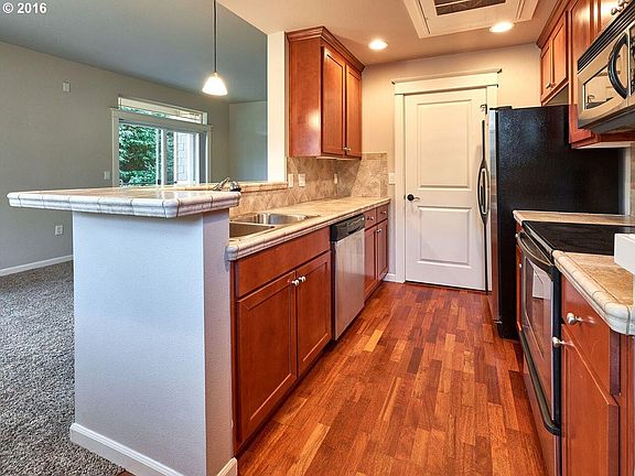 Hard to come by corner unit flooded with natural light. Numerous windows makes this unit bright and comfortable for NW living. This condo hallmarks custom tiled kitchen w/ hardwood floors & stainless steel appliances. Cased windows & custom doors. Tiled bathroom. Attached garage w/ extra storage. High ceilings. A/C. Forced air heat. Laundry room w/ washer & dryer. New carpet. Gated community. Close to Downtown West Linn, parks & I-205.