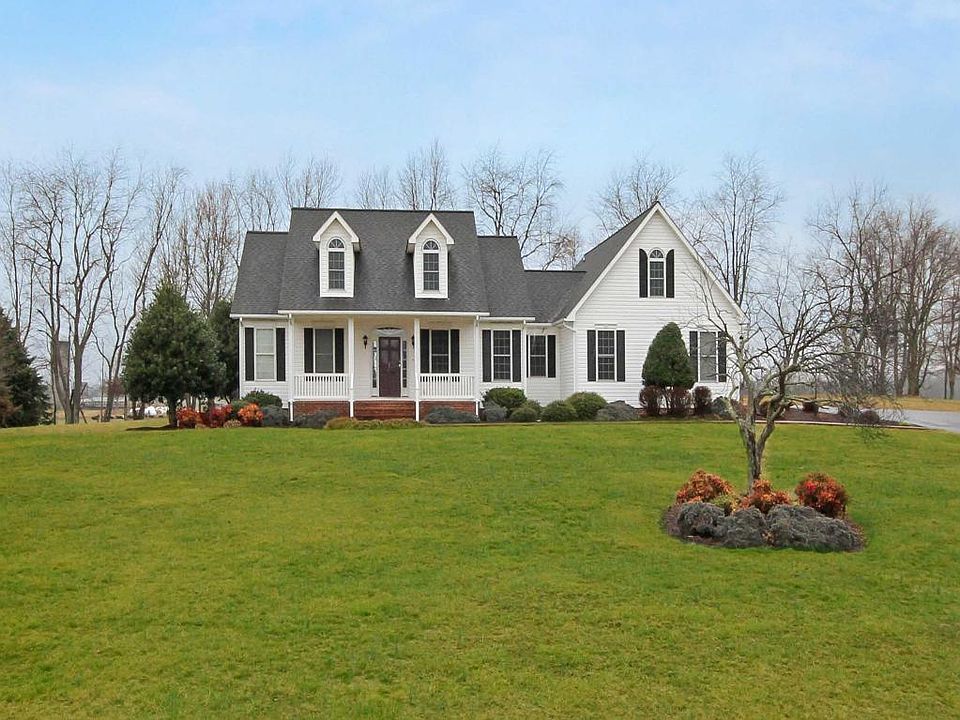 Riner--Open floor plan great room with vaulted ceiling and gas log fireplace leads out to a covered deck. Kitchen has handsome granite countertops Breakfast room has pastoral views. Hardwood floors throughout. Large master bedroom on main level. Nice landscaped, level 2 acre parcel. Brick front porch and brick sidewalk.