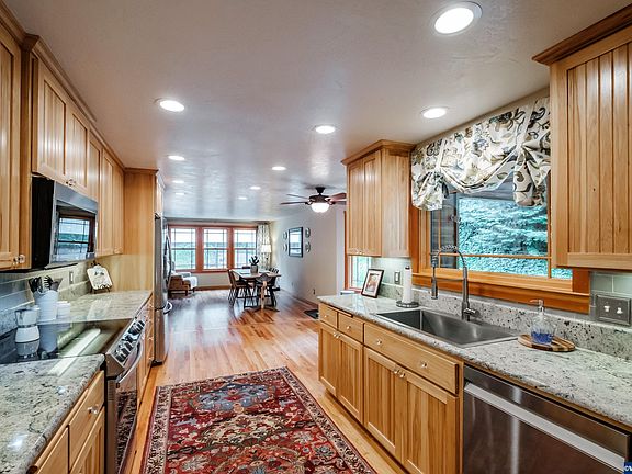 Situated on over an acre of land, this 3-bed, 2-bath home exuding charm and elegance with its beautiful wood floors throughout. The living room boasts a cozy gas fireplace, large windows and vaulted ceilings which create an airy and spacious feel. The kitchen has been tastefully updated, with SS appliances and granite countertops. Outside features include a 30x40 shop with concrete floors and a bathroom, mature landscaping and a covered back deck with a built in hot tub. Don't miss out!