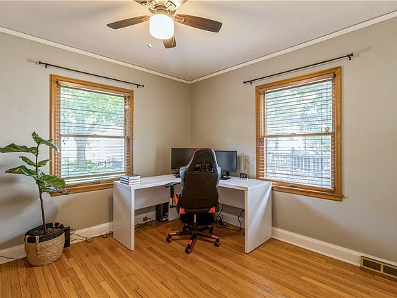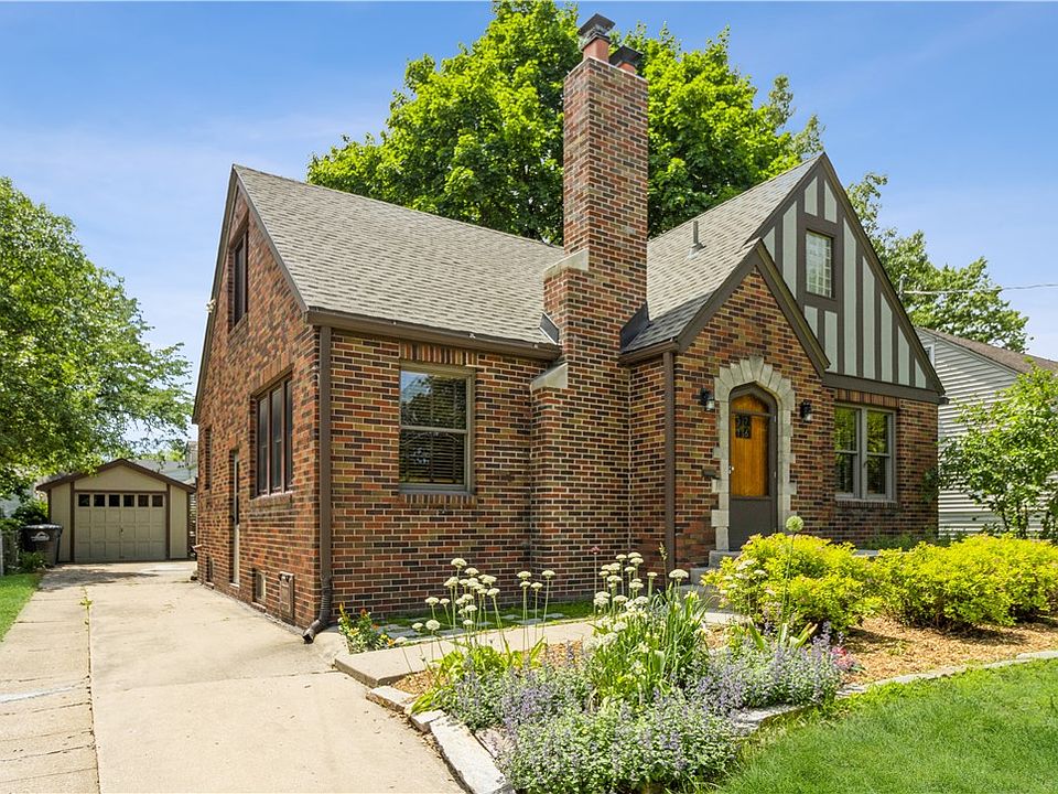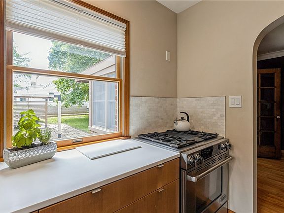 This charming home was updated by two architect owners and is sleek, meticulously updated and in terrific condition. The main floor features beautiful wood floors, two bedrooms, bathroom with subway tile and granite flooring, insulated windows, working brick fireplace and 3-season porch off dining room. Kitchen has custom cabinets, honed granite floor, Bosch DW, Jenn-Air duel-fuel stove. Upper level is primary bedroom with lots of storage and 3/4 bath, Backyard has lots of landscaping and a pergola patio off the garage (built 2020). New roof in 2020, waterproofed basement with sump and radon mitigation system. New windows in basement and main floor in 2017.