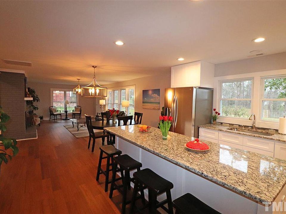 Completely remodeled! Open concept layout. Living room with a brick fireplace to gather your family is open to the dining area then open to the completely new kitchen with Shaker cabinets. The 12 foot long island in the kitchen has granite counters for a breakfast bar. The expanded master bedroom has room for your all your furniture. The ceramic tile tub and separate shower highlight the master bath, with its large walk in closet and separate toilet room. The low maintenance brick exterior is recently painted trendy grey. New heating and air conditioning, new tankless hot water heater, new appliances, new electrical and new plumbing will give you peace of mind.