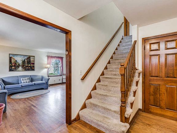 This spacious home sits on a lovely 1/2 acre lot in desirable Sunrise Ridge Estates. The expansive front porch is perfect for enjoying good times with family and friends. And for Holiday decorating. Inside you will find hardwood floors throughout the first floor. Good size rooms. Family room with very nice brick fireplace. 3 bedrooms, 2 1/2 baths. Master bath was remodeled in 2015. New furnace 2016. Full unfinished basement with 9' ceilings and rough in for bathroom. Don't miss the bonus space over the garage! Perfect for storage or finish as more living space. Access through upstairs bedroom. 1st floor laundry. Patio doors lead to a beautiful wooded yard with stamped concrete patio. Solid 6 panel doors. New dishwasher, stove, and microwave. All appliances included. Great location!
