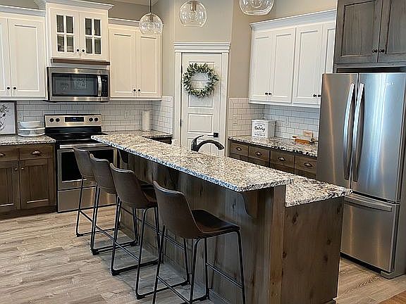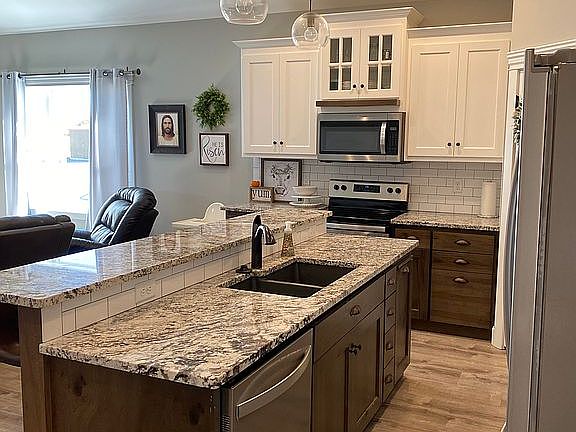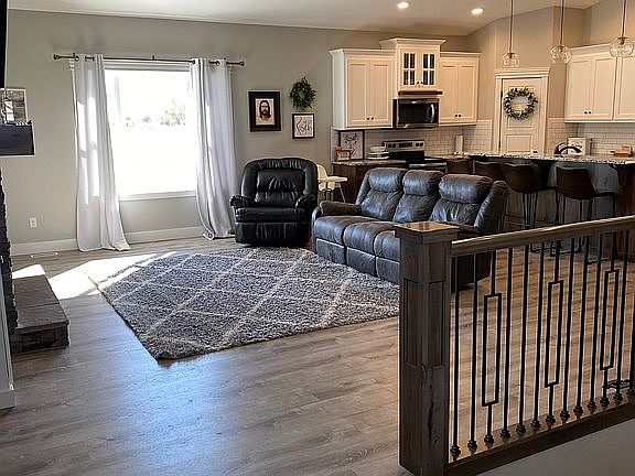 STUNNING, spacious, custom-built home for sale in Woodhaven Creek Estates subdivision. This lovingly-maintained five-bedroom, three full baths, and three car garage sits on a full acre. This acre includes a newly installed sprinkler system and seeded grass. This gorgeous air- conditioned home features an open floor plan with beautiful solid wood custom cabinetry in the kitchen and bathrooms. The comfy living area features a large window that lets in plenty of natural lighting. It also features luxury vinyl wood plank flooring, and a gorgeous rock gas fireplace surrounded by custom bookshelves. Ceiling fans, recessed lighting, and beautiful modern light fixtures illuminate each room. The modern kitchen has granite countertops, pantry, raised bar, and energy saving stainless steel appliances. Off of the kitchen is an office or music room, a spacious laundry room with beautiful black and white flooring, and a mud room. Outside the kitchen door is a sun porch for entertaining. A big master suite has a walk-in closet, a double sink master bath with a walk-in shower and an ultra-relaxing free-standing soaking tub. Downstairs is a family’s dream with a spacious family room, a toy room or office that is separated by custom-built barn sliding doors, two closets, two big bedrooms, bathroom, and a storage room. Beautiful French doors lead out onto a kid’s dream: a concrete pad with a basketball hoop, playground set, and an enclosed trampoline. A walking path is close by that leads to Jefferson Elementary and Farnsworth Middle School. Hurry Fast, this beautiful home won’t last long! Please call 2083604522 or 2086816752 to view this home today!