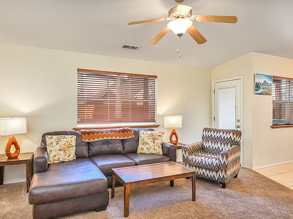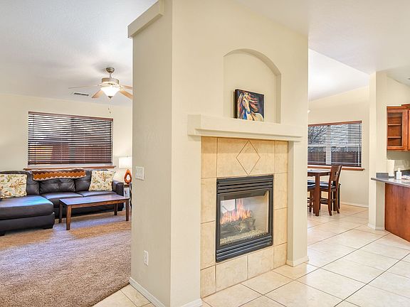Welcome to your home away from home in beautiful Flagstaff, Arizona. This charming 3-bedroom townhome is the perfect getaway for families, friends, and nature lovers. Nestled in a peaceful neighborhood, this delightful property offers a range of amenities that will make your vacation truly memorable. The cozy living room boasts a double-sided fireplace, perfect for creating a warm and inviting atmosphere where you can relax on comfortable seating and unwind after a day of exploring. The fully equipped kitchen with modern appliances and a dining area with seating for six make meal preparation and dining a breeze. Step into a small, fully enclosed backyard with tastefully landscaped small rocks, providing a perfect spot for relaxation and outdoor dining. This pet-friendly home features air conditioning, central heating, and a two-car garage for your convenience. All three bedrooms are located upstairs for your comfort and privacy, and the primary bathroom features a relaxing jetted tub for your utmost comfort. This pet-friendly home features air conditioning, central heating, and a two-car garage for your convenience. The property's location is a nature enthusiast's dream, just a stone's throw from forest trails and less than five miles from Northern Arizona University and Downtown Flagstaff, where you can explore local shops, restaurants, and entertainment.