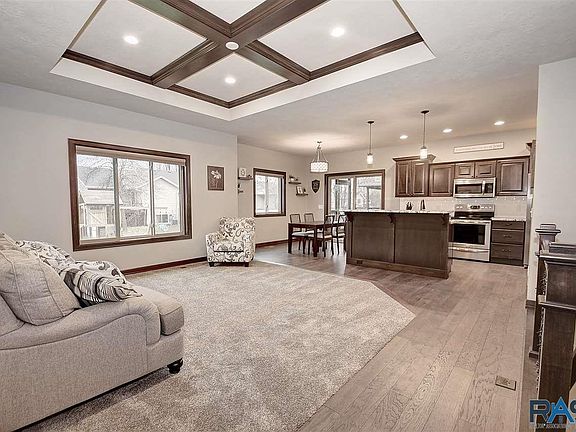 Not one detail has been missed in this home built by Image Homes. Step into this beautifully finished home and you'll find a grand coffered ceiling in the living room and an open floor plan into the kitchen and dining room. The kitchen has granite counter tops, maple cabinets, and hickory engineered wood laminate flooring. The generous dining space has a slider to an east facing covered deck. You'll appreciate having 3 bedrooms on the main floor, including a master suite with a large walk in closet, double vanity, and tiled shower. The basement has a wet bar and 2 more bedrooms, one with a walk-in closet, a full bathroom, and a large family room with gas fireplace - all with 9 foot ceilings. The over-sized 3 stall garage is heated and has water hook-ups and a floor drain. This home is in the Sioux Falls School District.