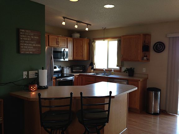Amazing location just one block from Red Trail elementary school in NW Mandan. Corner lot has several flowering trees and bushes. The yard is complete with underground sprinkler system, raised gardens, and an aluminum fence around the backyard. The upstairs has an open floor plan with living space, dining room, and updated kitchen stainless steel appliances purchased less than one year ago. The large master bedroom has a walk-in closet, the second bedroom has built-in shelving and a closet, and the upper level shares a full bathroom. Both bedrooms have new carpet and the living space has wood laminate. The lower level has two additional bedrooms, a large 3/4 bathroom (updated less than 1 year ago with tile shower), nice family room, and a laundry/utility room. Family room has an electric fireplace, built-in shelves, and surround sound speakers (wired for 7.1). The basement has daylight windows to provide an ample amount of light throughout. The amazing deck off the dining room measures 18'x14', great for entertaining and star gazing. The second level is a kids play area with a slide. The lowest level has a sandbox, swings, and play mats. The lower level also has an enclosed 7'x13' storage space that can be locked. The double garage is fully insulated and wired for electric heat. The driveway has widened concrete parking pads with a sidewalk that wraps around to the side yard. The house has new siding, new class 4 impact resistant shingles (huge home owners insurance discount!), new insulated double garage door, and new gutters. Very low specials! House was built in 2005 and has around 1,800 square feet. Please contact Carly to look at this amazing family home! Specials balance is $1925 Taxes are $2566 Insurance premium was reduced by 35% due to impact resistance shingle installation