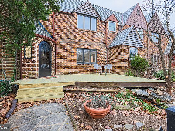 Look no further!! Tucked away on a serene street, this charming Tudor rowhouse offers a peaceful retreat in Ednor Gardens. You really can have it all. This wonderful home checks all the boxes and is perfect for entertaining. This beautiful sun filled rowhouse, has been recently renovated and updated, freshly painted and move-in-ready! Abundant natural light streams through bathing the entire home in gorgeous light. Original details are still found throughout the home, wood inlay floors, glass French doors to separate living and dining space or just to decorate space, stone mantel gas fireplace, glass inlay for coat closet and built in cabinet in the dining room with etched glass. Main level offers hardwood floors, recessed lighting, with updated kitchen. The renovated kitchen is a great space perfect for engaging with family and friends while cooking dinners and throwing parties. This gorgeous kitchen is adorned with granite countertops, stainless steel appliances, and plenty of cabinetry and counterspace. The sliding door from the dining room leads outside to an extra large private deck (16 X 15), ready to sip coffee or get to grilling, plenty of space for couches and an outdoor dining space. The dining room is spacious with great light. The living room is large and yet at the same time, cozy, warm and inviting, and filled with natural light. Perfect for parties, watching sporting events, as well as game nights or hanging out on the couch watching your favorite movies. Upper level includes 3 bedrooms and a full bathroom that has been recently updated with white tile surrounding the tub and black hexagon floor tiles. The primary bedroom has a fantastic large window and is incredibly spacious. The second and third bedroom are the same size which is a bonus. The basement is ready to be a man cave, play room, craft area, workout space, whatever you need. AND there is a garage and plenty of parking too!! Meticulously cared for this home embodies a perfect blend of thoughtful design, serene surroundings, and contemporary convenience, promising a haven where every detail contributes to a life well-lived. Come see it it is waiting for its new owner!