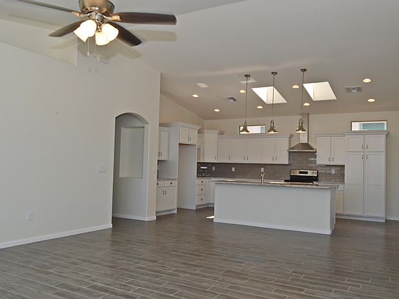 Beautiful new construction, open spacious split bedroom floor plan, vaulted ceilings, recessed lighting, ceiling fans throughout, skylights, low-e dual pane windows giving plenty of natural light, glass sliding door that leads out to covered patio. Spacious kitchen with large island, granite countertops, tile backsplash, stainless steel appliances, built in microwave, hooded stove vent, built in trash cans, USB port, pantry, plenty of cabinet space and storage. Plank tiles, carpeted bedrooms, cove entry to master bedroom, barn door into master bathroom, large master bathroom with double sinks, granite countertops and large walk in closet. Home is all electric.Owner/Agent.