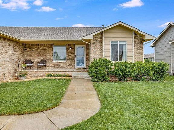 Fabulous home in Goddard school district with 4 bedrooms plus office/bonus room, 3 baths and 3 car garage. Located on a lake lot with beautiful views from the living room and dining space creating a serene atmosphere. The East facing deck was structurily built to easily add stairs on the North side down to the concrete patio. The basement is a fantastic place for entertainment with a woodburning fireplace with blowers, a separate game room area and a bonus room - perfect places for relaxation and fun! The whole basement has heated floors with 3 zones heated by a boiler is a luxurious feature that provides comfort during the colder months. Having a playground right across the street is a bonus for young children! All appliances (including washer and dryer) is a convenient extra! This home has it all with space, beautiful views, entertaining areas and the extra features not found in other homes. Schedule your appointment today!