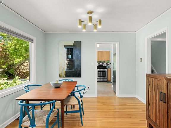 Impeccable Eastmoreland 3 bed 2 bath home near restaurants, grocery, banks, farmers market, coffee, Reed College, busline, pubs! High ceilings, natural light, gas appliances, dimmable lighting, crown molding, AC & tons of storage! Vinyl windows, cedar siding, trex decking, raised garden beds, private/fenced yard w/ covered deck, swing, firepit, 'smart' irrigation system. Recent paint, chimney tucking, french drains, drywells. Duniway Elementary! [Home Energy Score = 7. HES Report at https://rpt.greenbuildingregistry.com/hes/OR10186321]