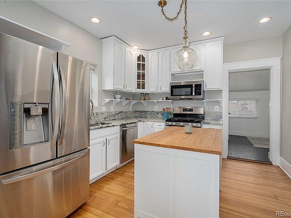 Turn-of-the-Century Brick Bungalow with all the charm on an oversized lot in an unbeatable location! Crawl to Tennyson Street or Highlands for incredible food, breweries, shopping and festivals. Upon approaching, you'll love the large Oaks surrounding the property on this quiet street with pride of ownership everywhere you look. The front porch is like a storybook as you enter into the main level where the kitchen, dining and living room open into one another as you entertain guests and soak up the modern comforts amidst the 1911 charm. The remodeled kitchen boasts upgraded appliances, granite countertops and recessed lighting.