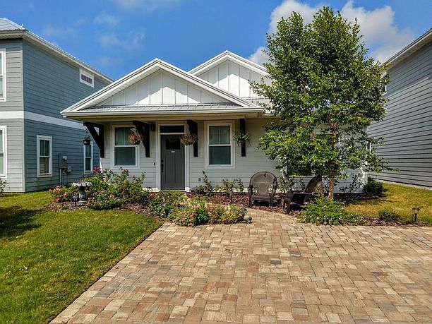 'CURRENTLY UNDER CONTRACT, SELLER ACCEPTING BACKUP OFFERS' Stunning Rosemary Beach style Florida cottage upgraded from builder standard 4 bed 2 bath home has open floor plan flowing perfectly into split bedroom plan. Main living area features modern beautiful wood-look tile and 9-foot ceilings with a well appointed kitchen boasting stainless appliances, white cabinets, granite counter tops for a light and airy feel. Master is over-sized with upgraded trey ceiling and great natural lighting. Perfect first home or empty nest home with room for visitors. Lovely landscape to include a deck in back and green space for outdoor living and pets. Exterior boasts the driveway pavers that add to the character and charm with a sprinkler system, second water meter, ha
