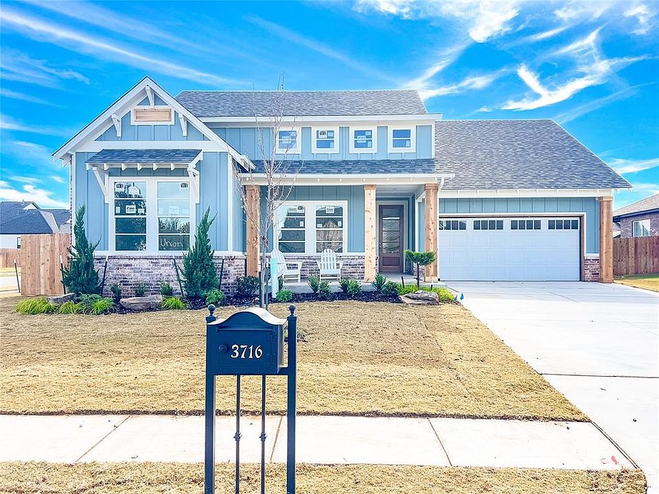 Be Home for the Holidays in this stunning home with $10,000 of Holiday Savings! Come see this adorable Modern Farmhouse home in our historically inspired community, Town Square! This home has 3 bedrooms, 2 baths, a dining area, a vaulted living room with beams, and a brick to ceiling fireplace as media built-ins on each side. Our Fitzgerald plan has a wonderful layout making it perfect for living and entertaining! Home is under construction - to be finishing Winter 2025. Town Square is Edmond's historically inspired community featuring a greenbelt, fishing pond, playground, and much more. Town Square Residents Club has a clubhouse, resort-style pool, and a state-of-the-art fitness center!