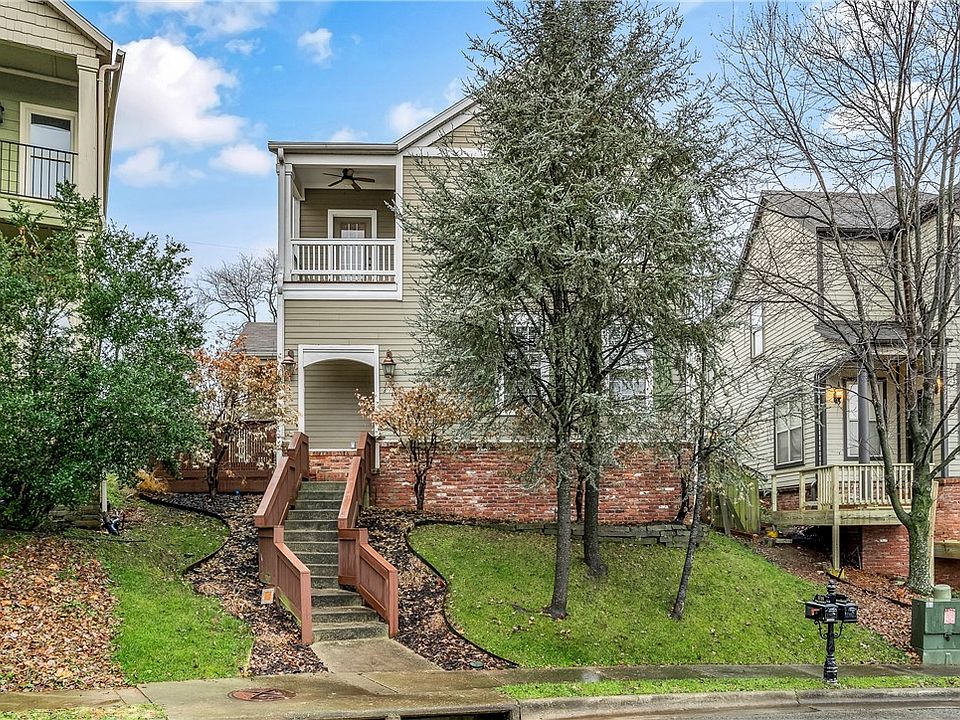 Highly desirable neighborhood near mall, Shopping, dining, trails, entertainment. Very close to the coming USL Soccer stadium. Open plan. Covered patio. Wrap around porch. Balcony off upstairs bedroom. Mature landscape. Huge Primary suite on main level. NEW HVAC. Roof only 3 years old. Home has completely flat driveway and walk into the home at garage entrance. Cutest craftsman neighborhood!