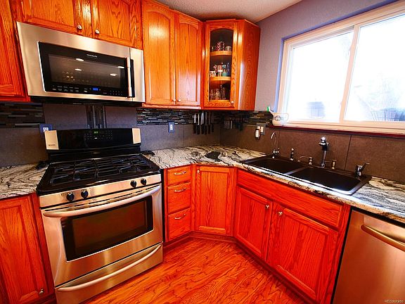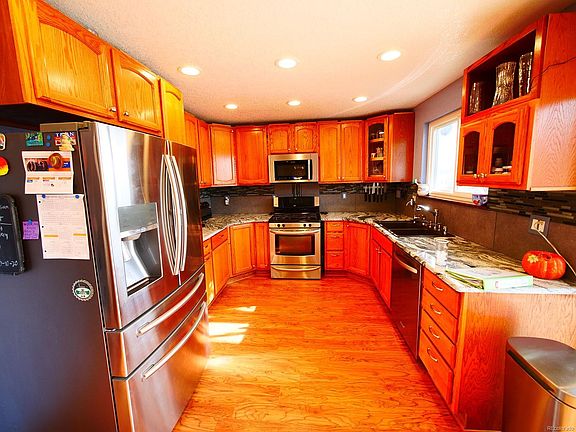 $10,000 under Others!! Huge 5 bed/2 bath mostly remodeled Bi-Level with GIANT Great Room. Great Rm has 2-Story Ceilings, brick fireplace w/insert & blower! Newer carpet on main level, New Kitchen w/all new SS appliances, Granite Counters & Cupboards, Newer Windows & Doors throughout, Updated baths, oversized lower shower, 5th bedroom can be used as bed or 3rd living area. Roof 7 years old. Huge lot with upper deck, covered patio, Gigantic Shed w/loft w/electric, sprinkler sys, tons of year round flowers/foliage, 3 houses from park & Woodglen Elem School. Property Sold As, IS, Where, IS. Listed $10,000 under others on market, need quick sale! Watch Thornton & Northglenn Fireworks from Back yard & Upper Deck! Call NOW!