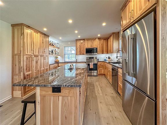 Step into this beautifully updated home and discover a kitchen that’s truly the heart of the house—featuring stunning custom Hickory cabinets, gleaming granite countertops, and a massive island with seating for five, perfect for gathering and entertaining. Floor-to-ceiling pantry cabinets offer an abundance of storage, while stainless steel appliances and a custom drop zone with hooks and cubbies bring both function and flair.