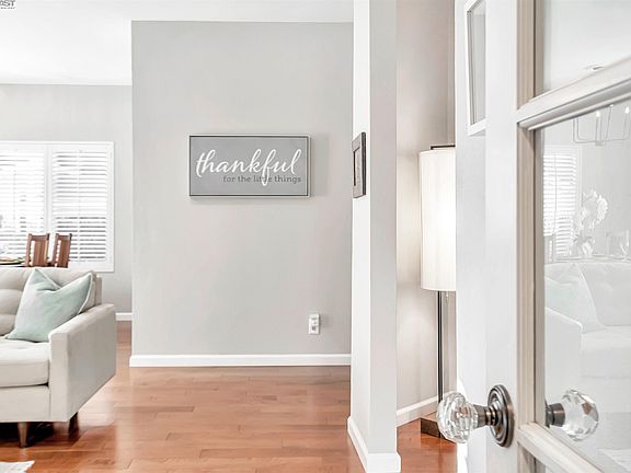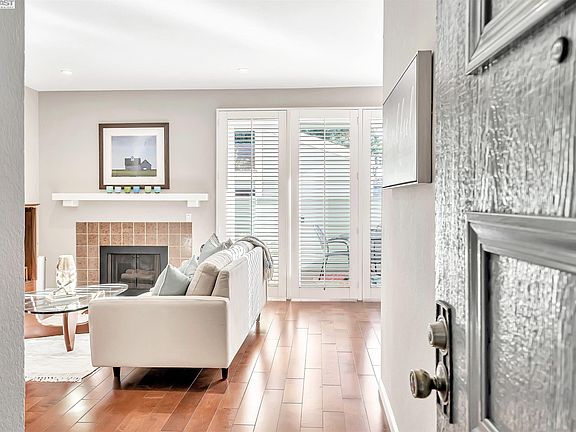Introducing a gorgeous ground-floor end-unit in the gated Meadowbrook community! Luxurious 9 ft. ceilings & an open floor plan draw in abundant natural light. Beautifully updated kitchen has stylish white cabinets with elegant LED under-cabinet lighting, tile counters and stainless steel appliances including a gas stove. This home is loaded with desirable upgrades throughout including wood floors, dual-pane windows and plantation shutters. Ideal floor plan has a versatile den, spacious bedroom and huge walk-in closet. Updated bathroom is equipped with a newly installed quartz dual-sink vanity. Additional features include refinished ceilings, modern light fixtures, an upgraded heating system and a Google Nest Thermostat. Kick back and enjoy the large picturesque patio with wood decking - a perfect space to relax and entertain! Meadowbrook’s amenities include greenbelts and swimming pools with hot tubs. Great location, with easy access to ACE, Amtrak train, BART, freeways & Dumbarton Bridge. Conveniently located close to shopping, restaurants, Alameda Creek & Trail, Quarry Lakes Regional Park, Lake Elizabeth and great schools! This home is a must see!