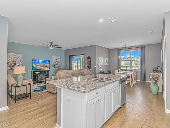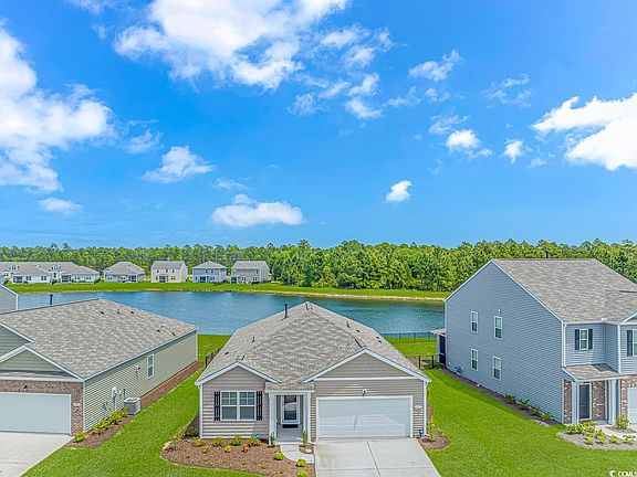 Welcome to your newly built home nestled in the desirable community of Bell's Lake! This single-level haven sits on a premium lake lot, offering breathtaking views and a tranquil atmosphere. Upgraded to include fresh paint, new flooring, shelving, lighting fixtures, ceiling fans, blinds, gutters, fenced yard, screened porch, garage epoxy floors, mulch and much more. Recently built by DR Horton, this Aria floor plan is one of a kind, with the sliding glass door being in the living room instead of the dining area. This home boasts builder and appliance warranties available to the Buyer. Step inside and discover a plethora of upgrades designed to elevate your living experience. Freshly painted walls and new bedroom flooring add a touch of modern elegance, with not a single inch of carpet in sight. Entertain with ease in the upgraded kitchen boasting granite countertops, a gas stove, pantry, stainless steel appliances, and a convenient breakfast bar. Adjacent, the dining area offers ample space for gatherings, seamlessly flowing into the living room adorned with a ceiling fan. Retreat to the master suite featuring new lvp flooring, a ceiling fan, and a spacious closet. The master bathroom exudes luxury with tile floors, double sink vanities, a standing shower with glass enclosure and a toilet closet. Two additional bedrooms provide versatility, each equipped with ceiling fans and new lvp flooring. A second bathroom offers convenience with a tub-shower combo and ample storage space. Practical amenities include a laundry room with cabinets (washer and dryer negotiable), gutters, and a termite bond for peace of mind. The fenced backyard and screened porch provide the perfect setting for outdoor relaxation. The two car garage features shelving, attic storage and epoxy resin garage floors to ensure durability and easy maintenance. Outside, enjoy the premium pond lot location with lush woods across, complemented by recently planted landscaping including a crate myrtle tree and roses. This gas community ensures efficient heating, water heating, and cooking. Conveniently located behind Barefoot Resort and just moments away from North Myrtle Beach, Myrtle Beach, and more, this home offers the perfect blend of comfort, style, and convenience. Don't miss your chance to make it yours!